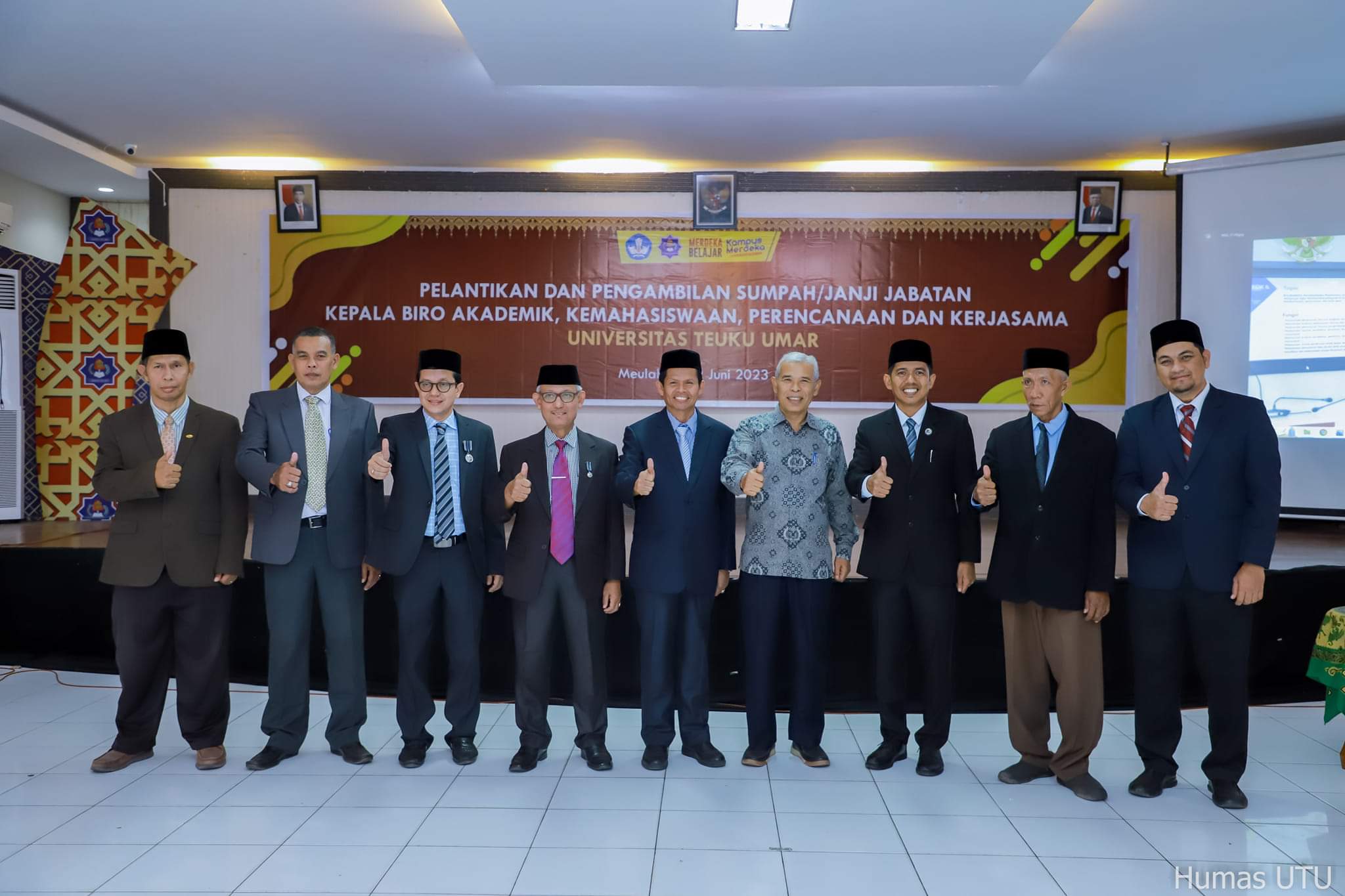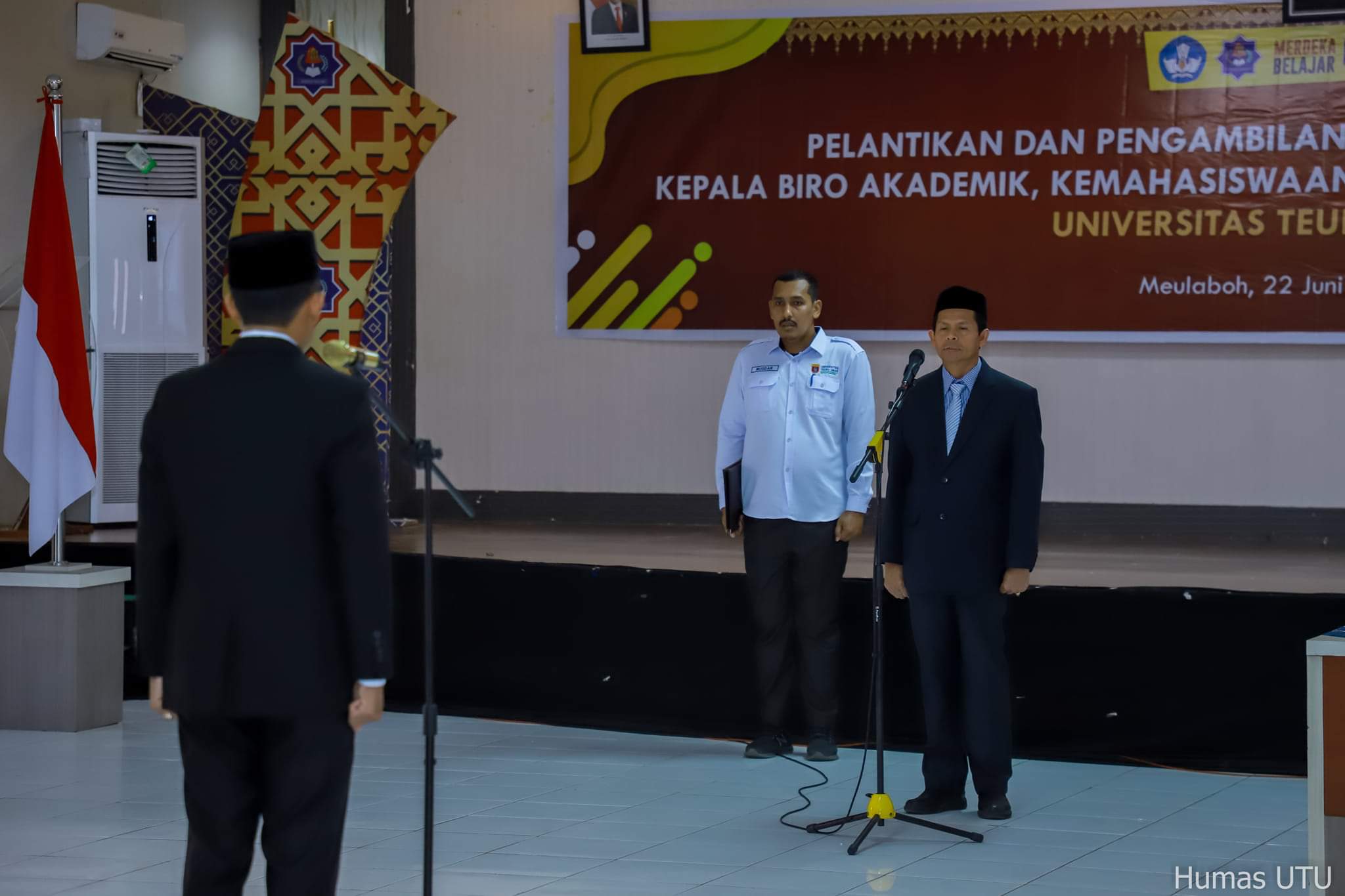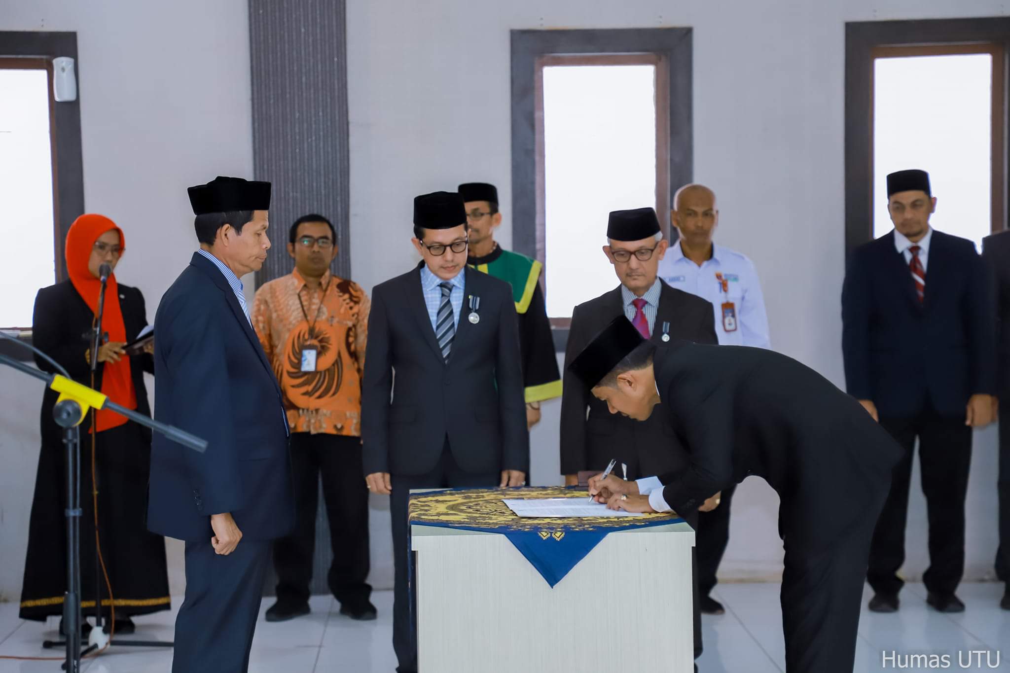 Pelantikan tersebut berlangsung dalam sebuah upacara khusus yang digelar di Aula Utama, Kampus UTU, Alue Penyareng. Turut hadir Wakil Rektor II Bidang Umum dan Keuangan, Prof. Dr. Nyak Amir, M.Pd, Dekan FISIP, Basri, SH., MH; Dekan Fakultas Ekonomi, Dr. Hamdi Harmen, M.Si, Dekan Fakultas Pertanian, Ir. Rusdy Faizin, M.Si, Dekan Fakultas Teknik, Dr. Ir. Irwansyah, S.T., M.Eng, IPM, Dekan FKM Dr. T. Alamsyah, S.K.M., M.PH dan sejumlah pejabat fungsional lainnya. Turut hadir Mantan Kabiro AKPK Drs. H.T. Muslim Raden, M.Si dan mantan Kabiro Umum dan Keuangan, Mawardi Amin, SE.Ak.