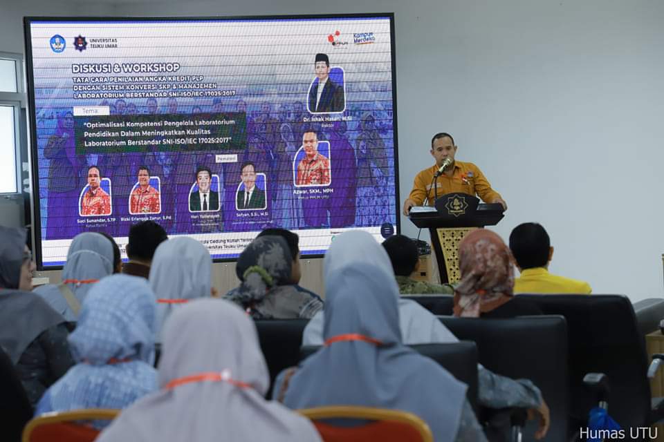 MEULABOH – UTU | Perhimpunan Pengelola Laboratorium Pendidikan Indonesia (PPLPI) Universitas Teuku Umar menggelar diskusi & workshop tentang kompetensi pengelola Laboratorium Pendidikan. Kegiatan ini dilaksanakan di Aula Gedung Kuliah Terintegrasi, Kampus UTU Pada Rabu-Kamis, 21-22 Juni 2023.