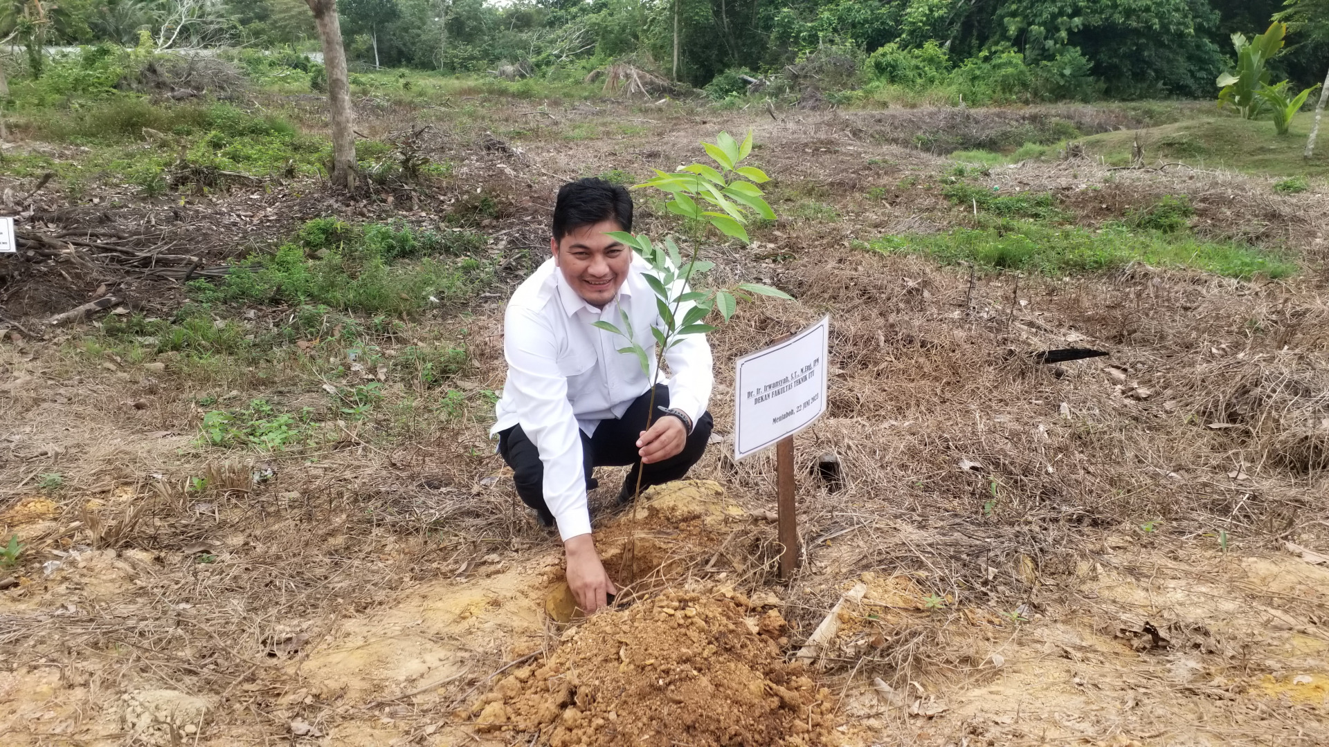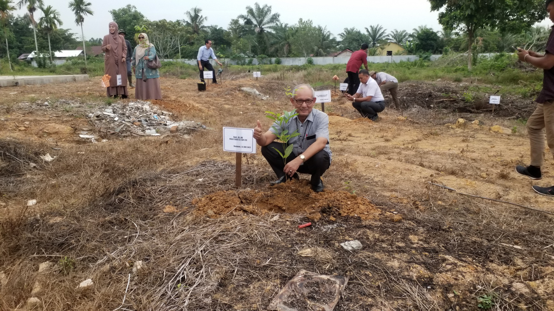 “Kampus haruslah indah, nyaman, aman dan sejuk. Bila tidak ada pohon dan tanaman, kampus tidak akan sejuk dan indah. Oleh karena itu sangat perlu adanya penanaman pohon”, jelas Dr. Ishak Hasan