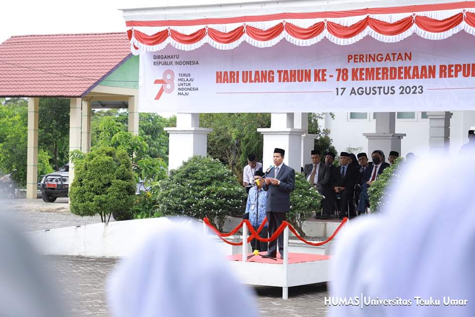 MEULABOH – UTU | Dalam rangka memperingati Hari Ulang Tahun Kemerdekaan Republik Indonesia ke-78, Universitas Teuku Umar menggelar upacara bendera yang digelar di halaman gedung Rektorat kampus UTU tepat pada pukul 08.00 WIB, Kamis (17/08/2023).