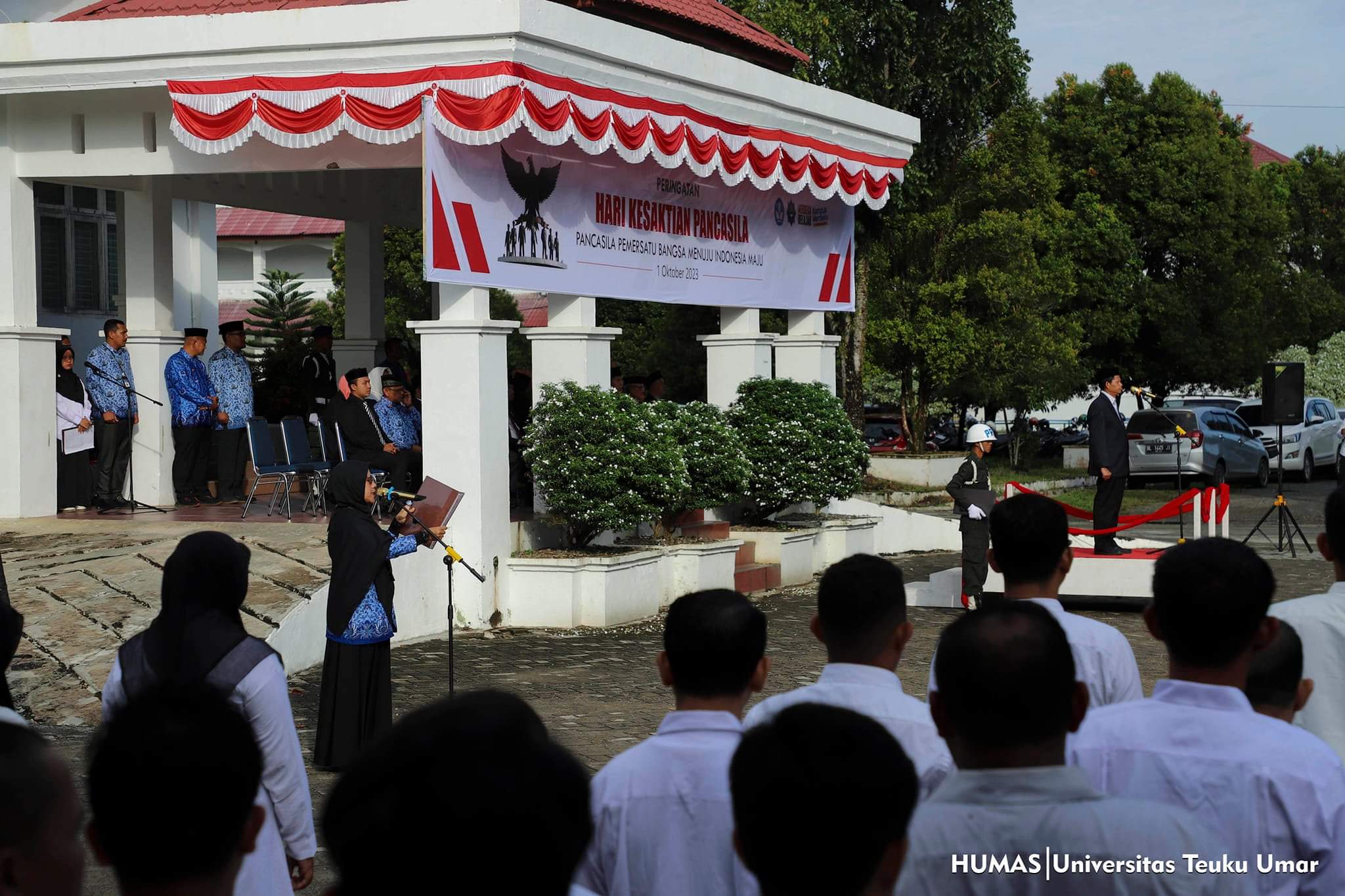 MEULABOH – UTU | Segenap pimpinan, dosen dan tenaga kependidikan serta mahasiswa Universitas Teuku Umar (UTU) menggelar upacara peringatan Hari Kesaktian Pancasila tahun 2023, di lapangan gedung Rektorat UTU, Senin pagi (2/10/2023).