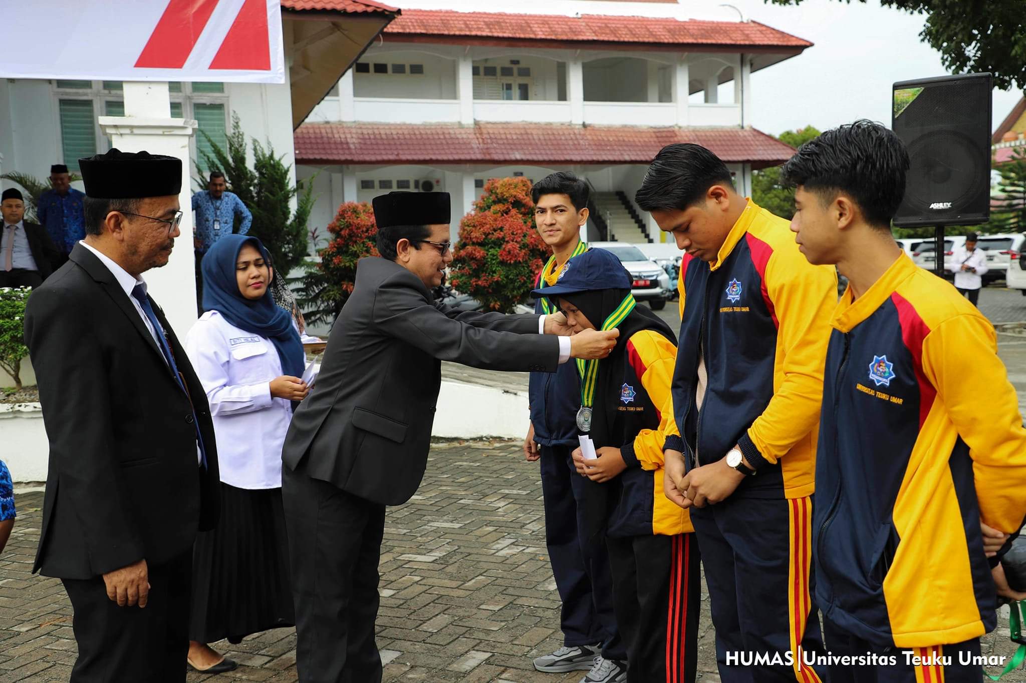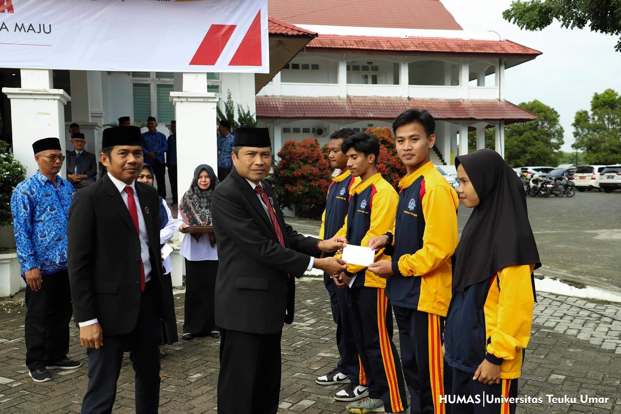 Acara penyerahan bonus untuk atlet POMDA dilakukan di halaman gedung Rektorat Kampus UTU, seusai upacara Hari Kesaktian Pancasila, Senin (2/10/2023). Pada kesempatan itu, pihak UTU memberikan penghargaan atau bonus kepada mahasiswa yang berhasil meraih medali di ajang perhelatan olahraga terbesar tingkat mahasiswa tersebut.