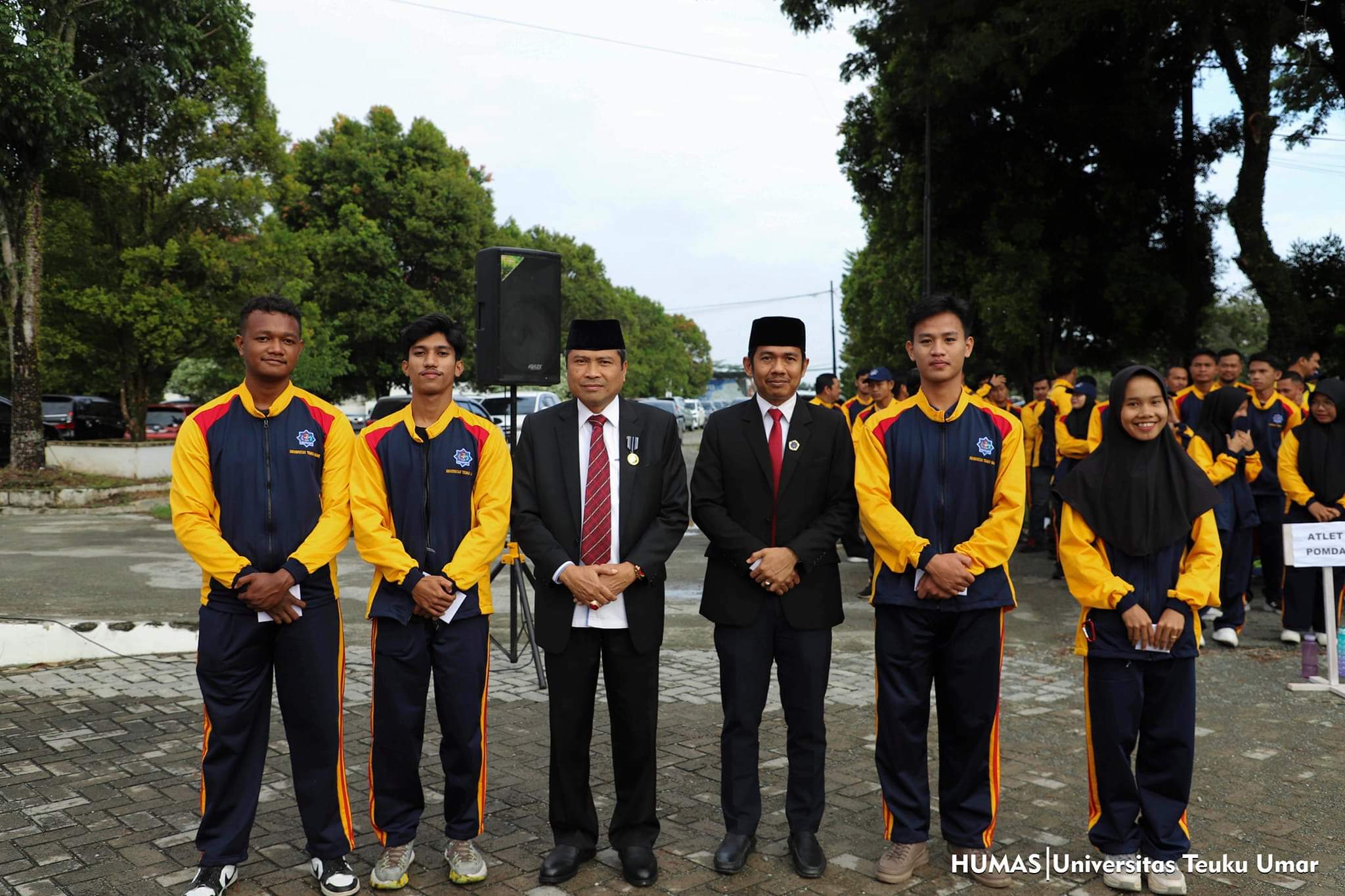 Di barisan pimpinan, tampak hadir Ketua Senat UTU Basri, SH., MH Wakil Rektor II Bidang Umum dan Keuangan, Prof. Dr. Nyak Amir, M.Pd, Wakil Rektor III Bidang Kemahasiswaan dan Alumni Ibrahim, M.NSc, para dekan, ketua lembaga dan kepala unit kerja selingkung UTU lainnya.